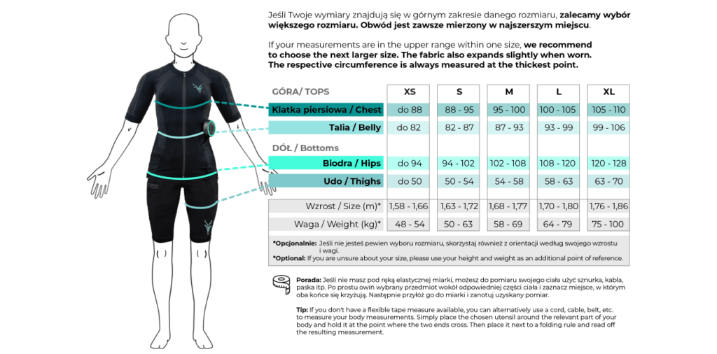 - Koszulka lub podkoszulek EMS może teraz stać się pełnym kombinezonem EMS – z aktywacją aż po łydki!