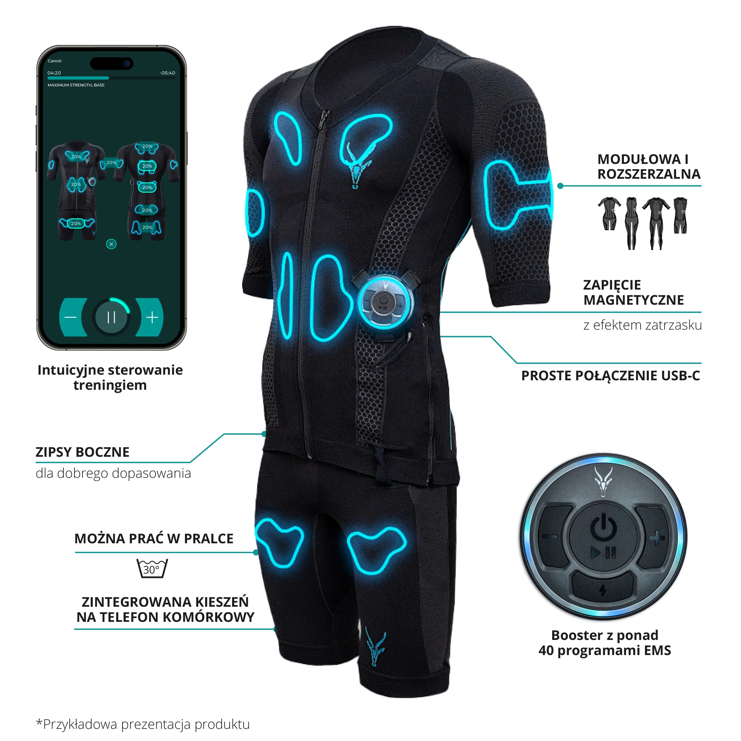 - EMS dopasowany do każdego poziomu sprawności – od początkujących po zaawansowanych sportowców.